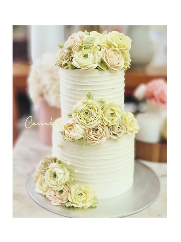 Elegantly covered and adorned with premium buttercream, this cake features a stunning array of beautiful buttercream flowers, meticulously crafted to enhance its charm and sophistication.